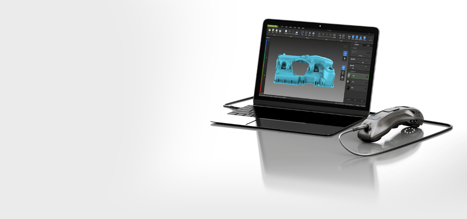 自主研发Xscanner 3D软件,配有人性化用户界面,引导流程简明清晰, 可直观、精准地将被扫描物体转化为高分辨率三维模型,并提供快速数据后处理等功能。 扫描结果支持一键导出Xpro、ply、txt、stl、off、obj等格式文件,无缝衔接主流三维检测软件和三维设计软件。
