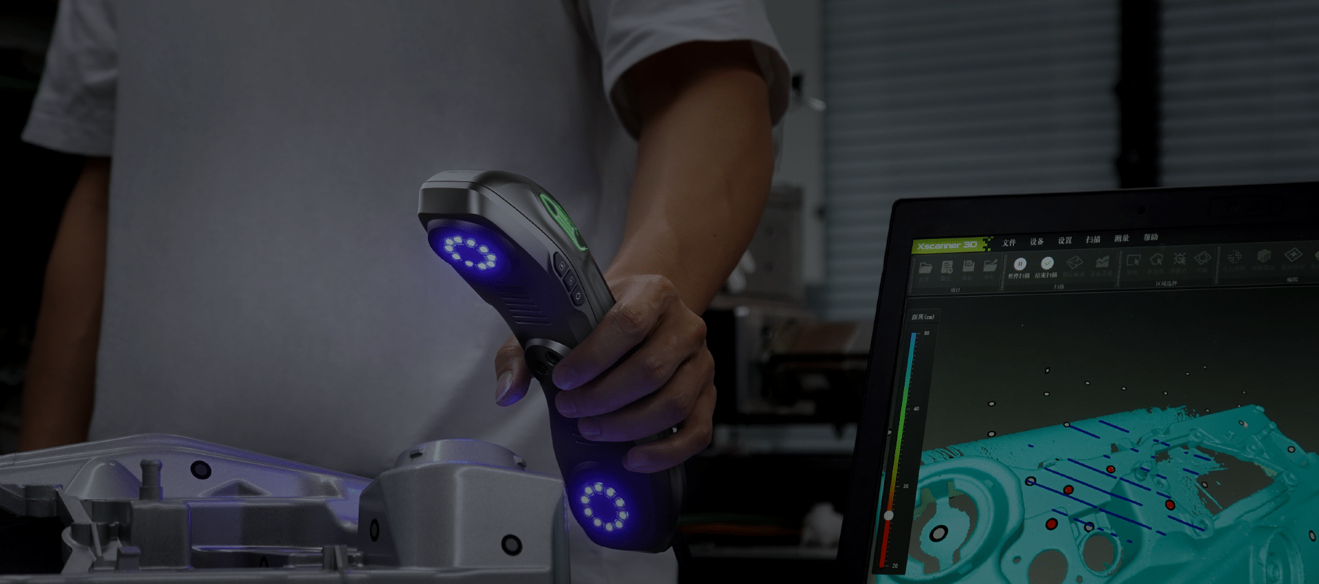 Xscanner 3D采用蓝色激光技术,具备卓越抗干扰性能。 配备7对交叉激光线和1束高能激光线,双模式自由切换, 效率细节一举两全。